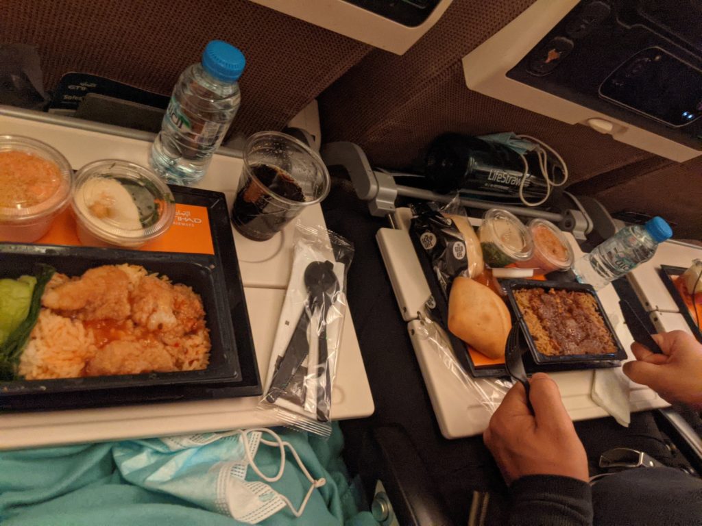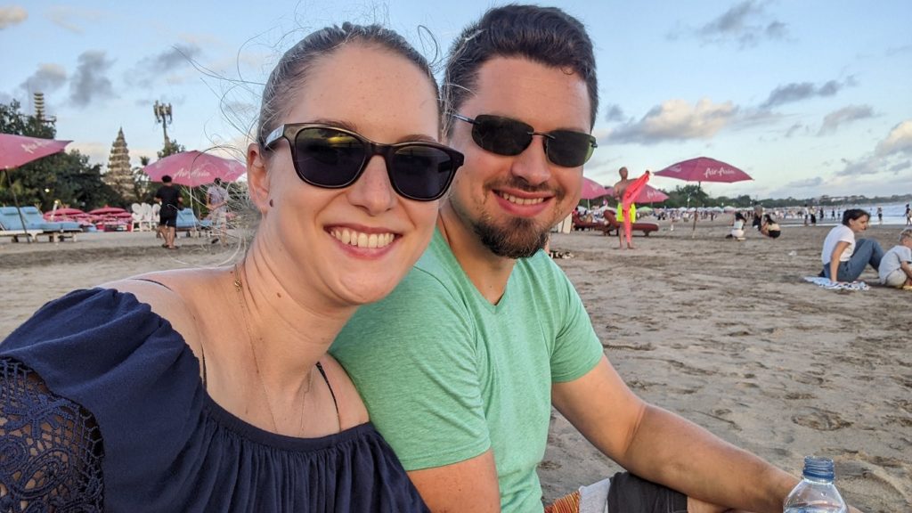 Über Abu Dhabi und Kuala Lumpur ging es für uns innerhalb 25 Stunden nach Denpasar. Man muss schon sagen, dass ein bequemes Bett zum Übernachten wirklich schöner ist als Flugzeugsitze (kaum Beinfreiheit für Hannes) oder Bänke am Flughafen. Das Essen in den Fliegern war prima und Hannes war mit Gaming auch bespaßt 🙂 Vanessa hat natürlich vieles verschlafen! (Weil sie immer und überall schlafen kann)