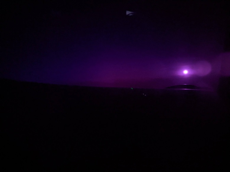 Highlight, als Vanessa mal nicht schlief: Pinke Sonne durch das Flugzeugfenster! Funfrage: Wer verehrt die pinke Sonne?