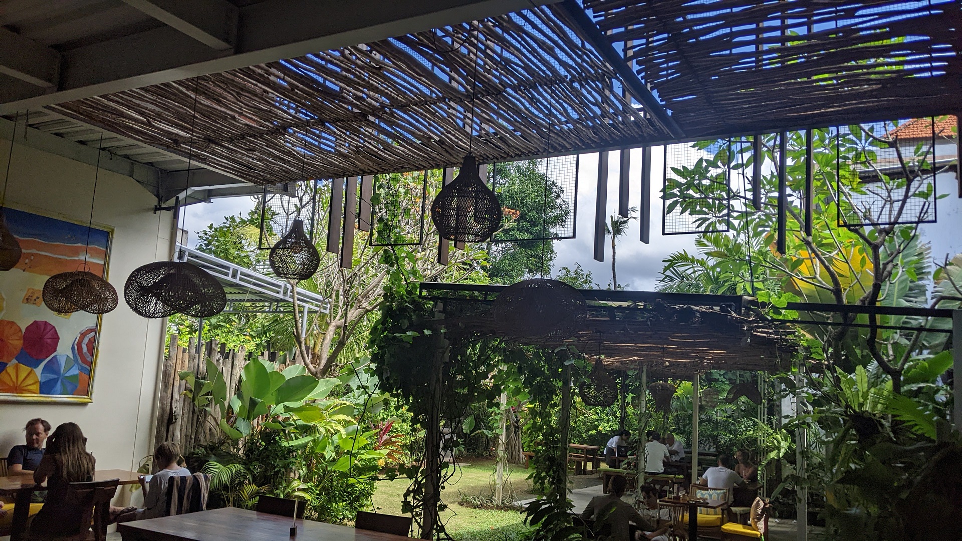 Nach einer mächtigen Mütze voll Schlaf bis 12 Uhr am nächsten Tag checkten wir erstmal kurz ein (kurze Vorstellung und Frage, ob wir noch etwas bräuchten), und gingen los, um zu frühstücken/brunchen. Eine Straße weiter entdeckten wir ein Restaurant mit wunderschönem Hinterhof.