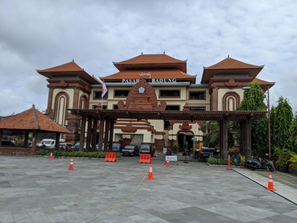 MIt dem Taxi ließen wir uns ins City Center von Denpasar kutschieren. Dort besuchten wir zuerst den Pasar Badung, einen einheimischen Markt mit vielen Gewürzen, traditionellen Kleidern, Fisch, Fleisch und Obst. Die Gerüche waren vielfältig. Vanessas kleine Stupsnase hat es fast umgehauen.