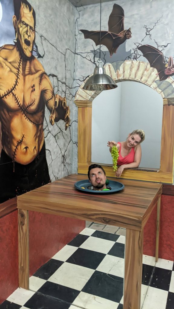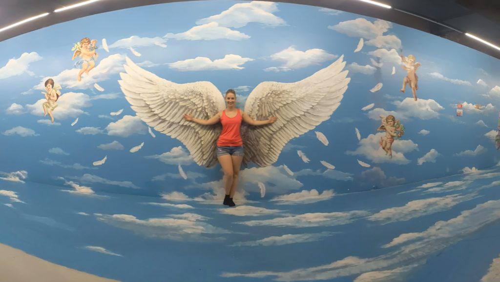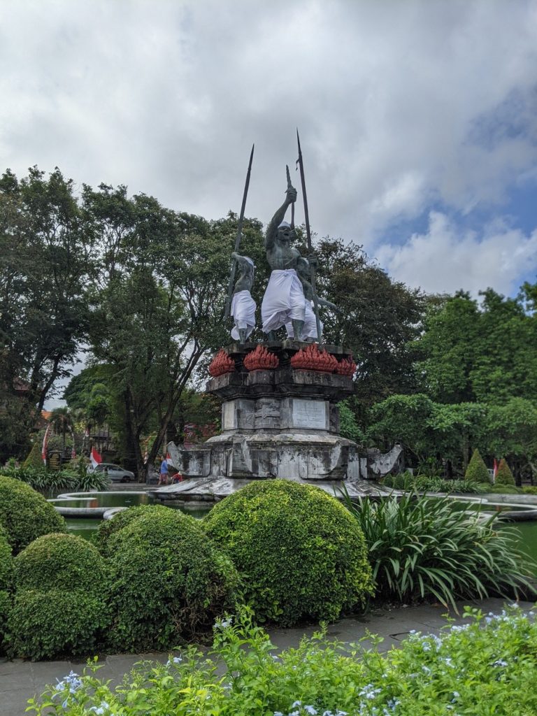 Danach wandereten wir durch den Metalldschungel Innenstadt Denpasar, wo es von Rollern nur so wimmelt. Nach dem MItagessen (es gab etwas von der Karte, das wir nicht kannten und ein Getränk aus Avocado, Kaba und Schokocreme) ging es zu einigen Wahrzeichen und Monumenten. Im 3D Museum hatten wir besonders viel Spaß.