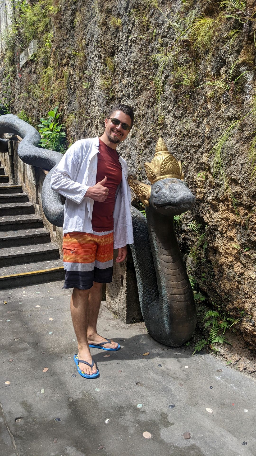 Nach einer guten Erholungsrunde fuhren wir erneut nach Bukit los, um „Garuda Wisnu Kencana“ zu besuchen. Das ist eine über 120 Meter hohe Statue des Gottes Wisnu, der auf dem mystischen Adler Garunda sitzt. Sie wurde 2018 erbaut und zählt zu den größten Statuen der Welt. Als Wahrzeichen der Halbinsel ist sie noch kilometerweit, auch von unserem Strand aus, zu sehen. Da am Nachmittag Spa für Vanessa anstand (3 Stunden Massage und Peeling! <3 ), machten wir uns auf den Rückweg. Hier hielten wir noch am Strand „Jimbaran Beach“, einer größeren Bucht der Westküste. Dort schafften wir es das erste Mal nicht nur die Zehen ins Wasser zu strecken, sondern auch ganz ins Meer zu hüpfen. Nachmittags ließ Vanessa sich im Spa verwöhnen, während Hannes unsere Wäsche waschen ließ und sich die ersten Verletzungen beim Plantschen im Meer zuzog. (Hannes Formulierung: Ich war ganz heldenhaft verfetzt in meterhohen Wellen unterwegs! – Es war bestimmt irgendwas dazwischen 😀 ) Kilometerstand: 37 Kilometer, schadenfrei, Hannes leicht verletzt.