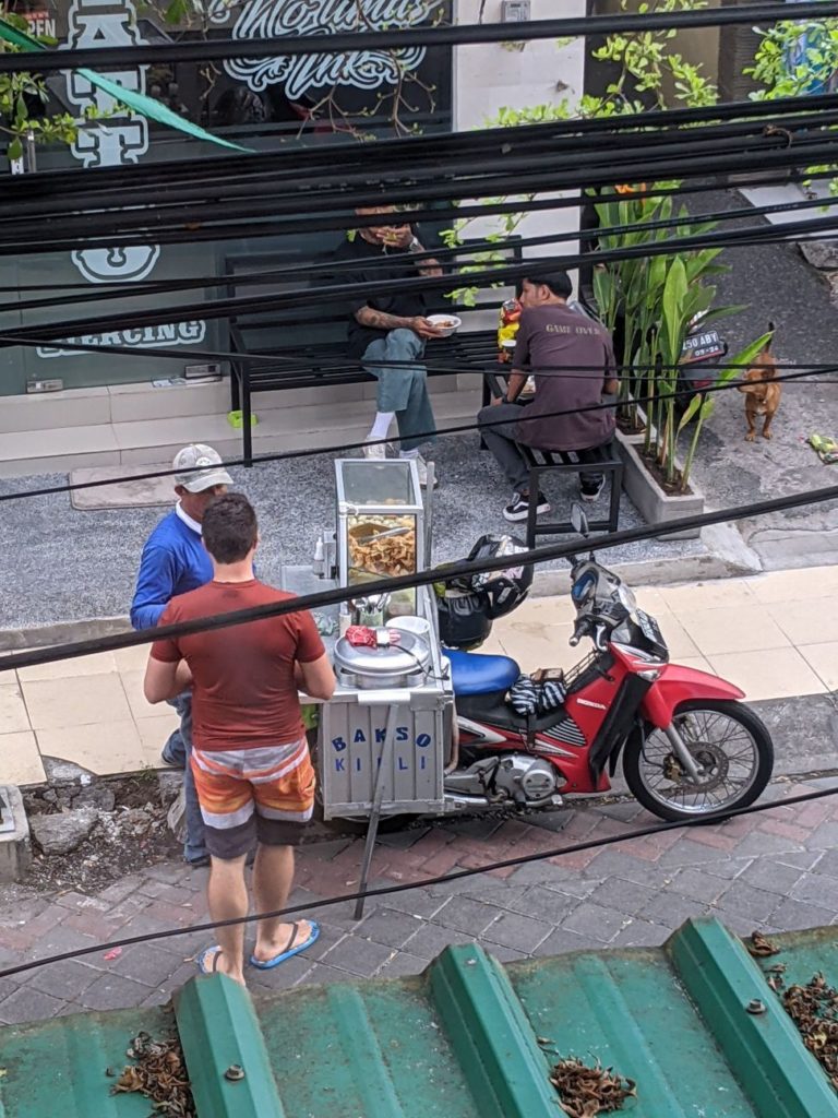 Leider machte besonders Vanessa die Hitze zu schaffen, sodass der geplante Ausflug an die Westküste Bukits am Nachmittag auf den nächsten Tag verschoben werden musste. Somit verbrachten wir den Nachmittag im kühlen Zimmer. Highlight hier: Bakso (Hühnersuppe mit Fleischbällchen und Zutaten, die für uns noch nicht ganz zuzuordnen sind) vom Roller eines Einheimischen. Super lecker!