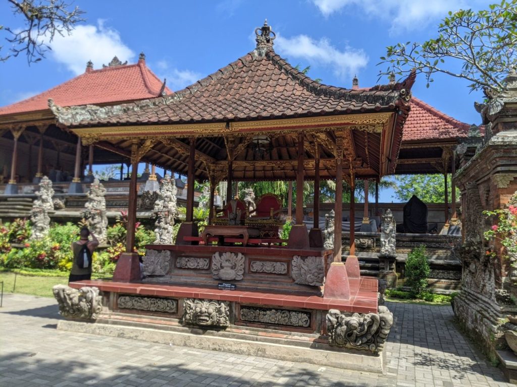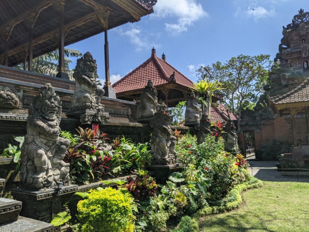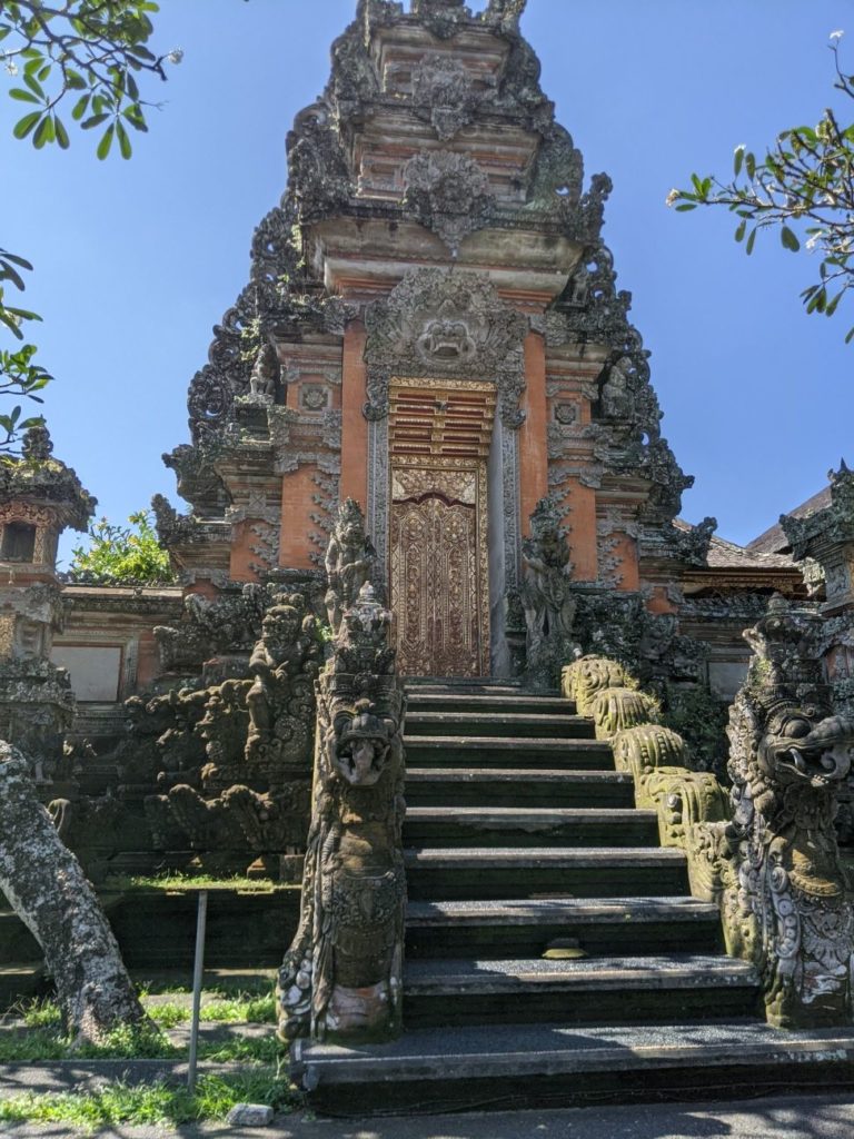 Neuer Tag, neues Glück…oder wie man so schön sagt? Nach unserem Frühstück (Es gab unter anderem Sandwiches mit Banane! ) legte Vanessa nochmals ein Ausruhschläfchen hin. Danach erkundeten wir die Stadt: Ubud Market, Palast und Tempel. Und immer noch: Super viel los hier!!
