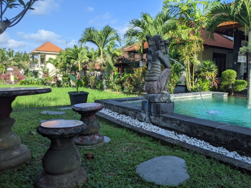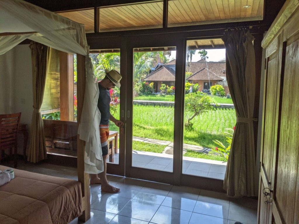 Nach dem ersten Stadtrundgang zogen wir in unsere eigentliche Unterkunft: ein Bungalow mit Blick auf Reisfelder. Dann richten wir uns ein und planten unsere Woche in Ubud und der Umgebung. Es wird ganz schön erlebnisreich werden! 🙂
