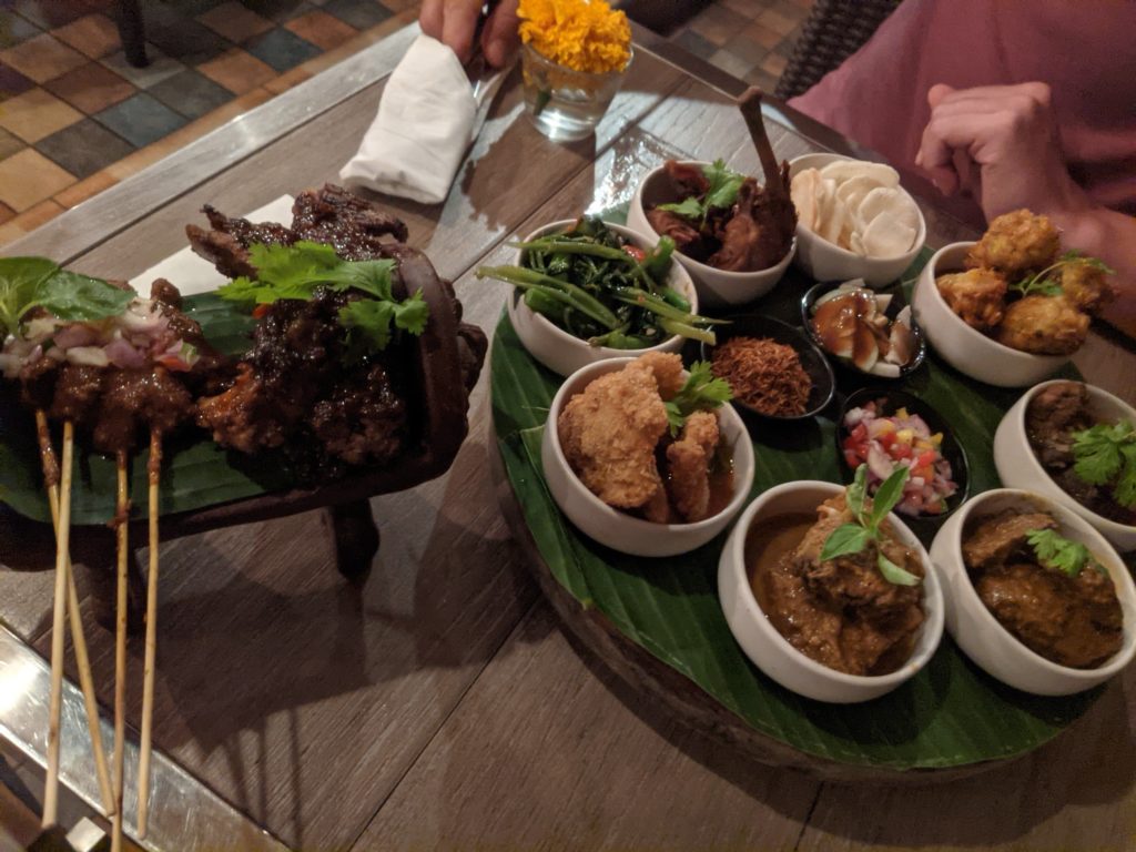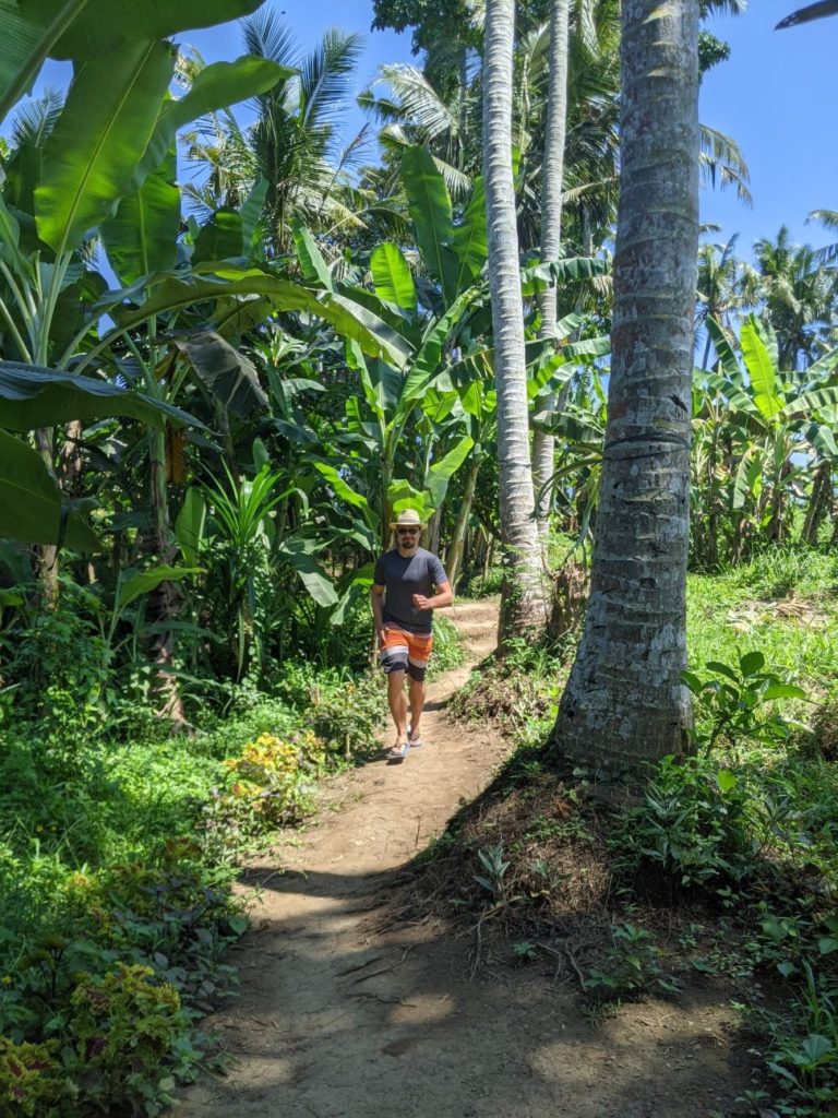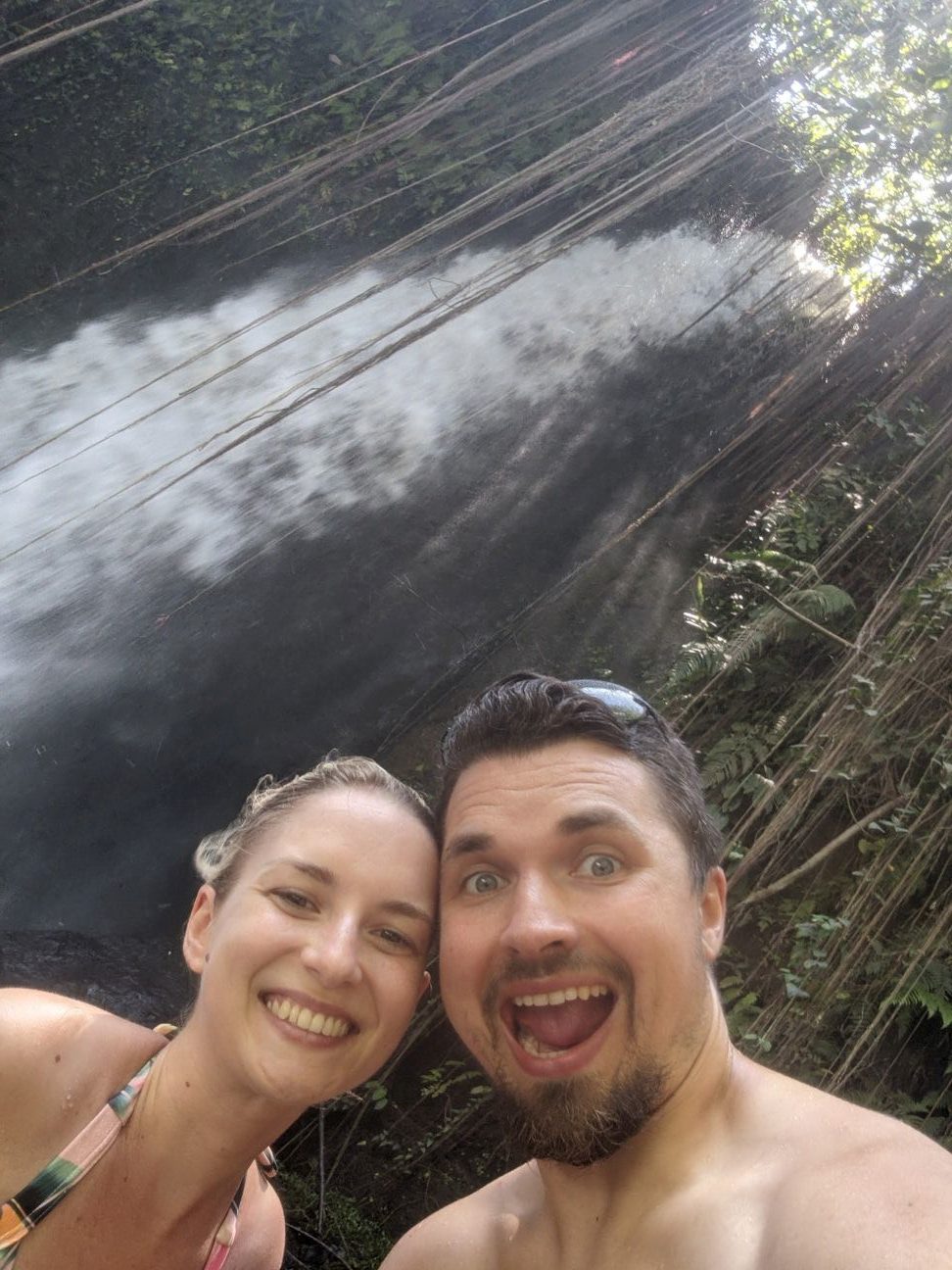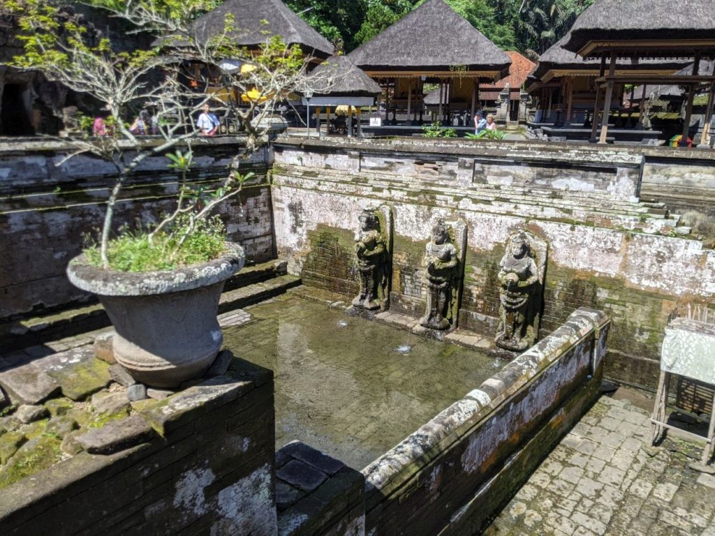 Nach unserer Erkundung der Innenstadt Ubuds mieteten wir uns erneut einen Roller für die nächsten Ziele. Zuerst peilten wir den Südwesten von Ubud an. Um zum „Sumampan“ Wasserfall zu gelangen mussten wir einen kurzen Marsch durch den Wald hinlegen und einige steile Stufen hinab an den Fluss steigen. Dort konnten wir an einer Leine, die über den Fluss führt, bis zum Wasserfall gelangen. Was für eine Erfrischung bei den Temperaturen! Am Tempel von Goa Gajah entdeckten wir schöne Steinskupturen und fanden auch einen tollen Magneten für unseren Kühlschrank. Hier merkte man bei den einheimischen Verkäufern stark die letzten zwei Jahre ohne Einkommen: Um jeden Touristen wurde hart gekämpft! Als letzte Station wählten wir den Monkey Forrest direkt in Ubud, denn es wurde langsam Abend. Der Monkey Forrest ist ein Waldareal, in dem wilde Affen leben. Auf schön angelegten wegen kann man dieses Areal besichtigen. Natürlich trafen wir auf den ein oder anderen Affen, der ein bisschen frecher unterwegs war und gerne den ein oder anderen Touri besprang. Besonders interessant waren Rucksäcke. Wir haben unsere Taschen im Scooter gelassen und waren sehr unspektakulär für die Affen! In diesem Affenwald gibt es auch einen Friedhof für Einheimische, den wir besichtigen konnten. Am Vormittag hat dort eine Zeremonie der Verbrennung stattgefunden. Vor dem Abendessen gönnten wir uns noch eine Verschnaufpause am Pool. Dann ließen wir es uns nochmal so richtig gut gehen und bestellten uns in einem balinesischen Restaurant eine Platte mit allerlei köstlichem Essen! Was das alles genau war, können wir nicht sagen, aber gemundet hat es sehr!