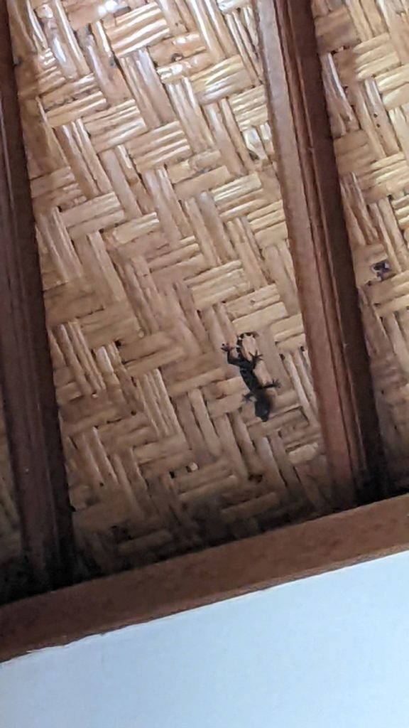 Übrigens teilen wir unser Bungalow mit drei Geckos (einem schwarzen mit schwarz-weiß gestreiftem Schwanz, einem grünen und einem Mini-Gecko) vielen Ameisen in verschiedenen Größen und Farben, einem Tausendfüßler und sehr wenigen Fliegtieren (Die Geckos scheinen stets gesättigt! -Wie auch wir :D)